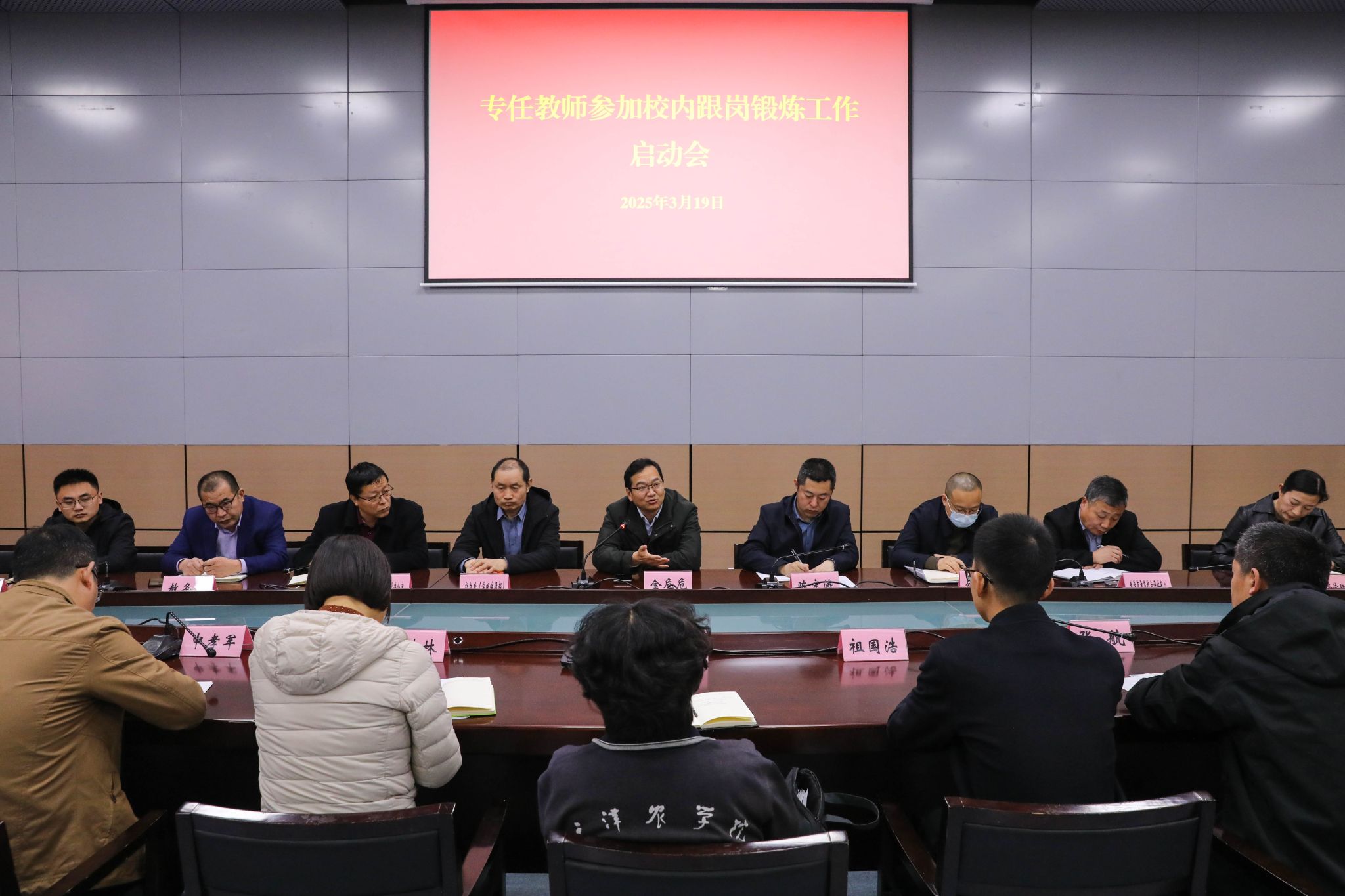 为深入贯彻新时代党的组织路线,拓宽选人用人视野,完善年轻干部发现培养选拔机制,提升专任教师综合能力和管理水平,3月19日下午,我校召开专任教师参加校内跟岗锻炼工作启动会。校党委副书记、校长金危危出席会议并讲话。