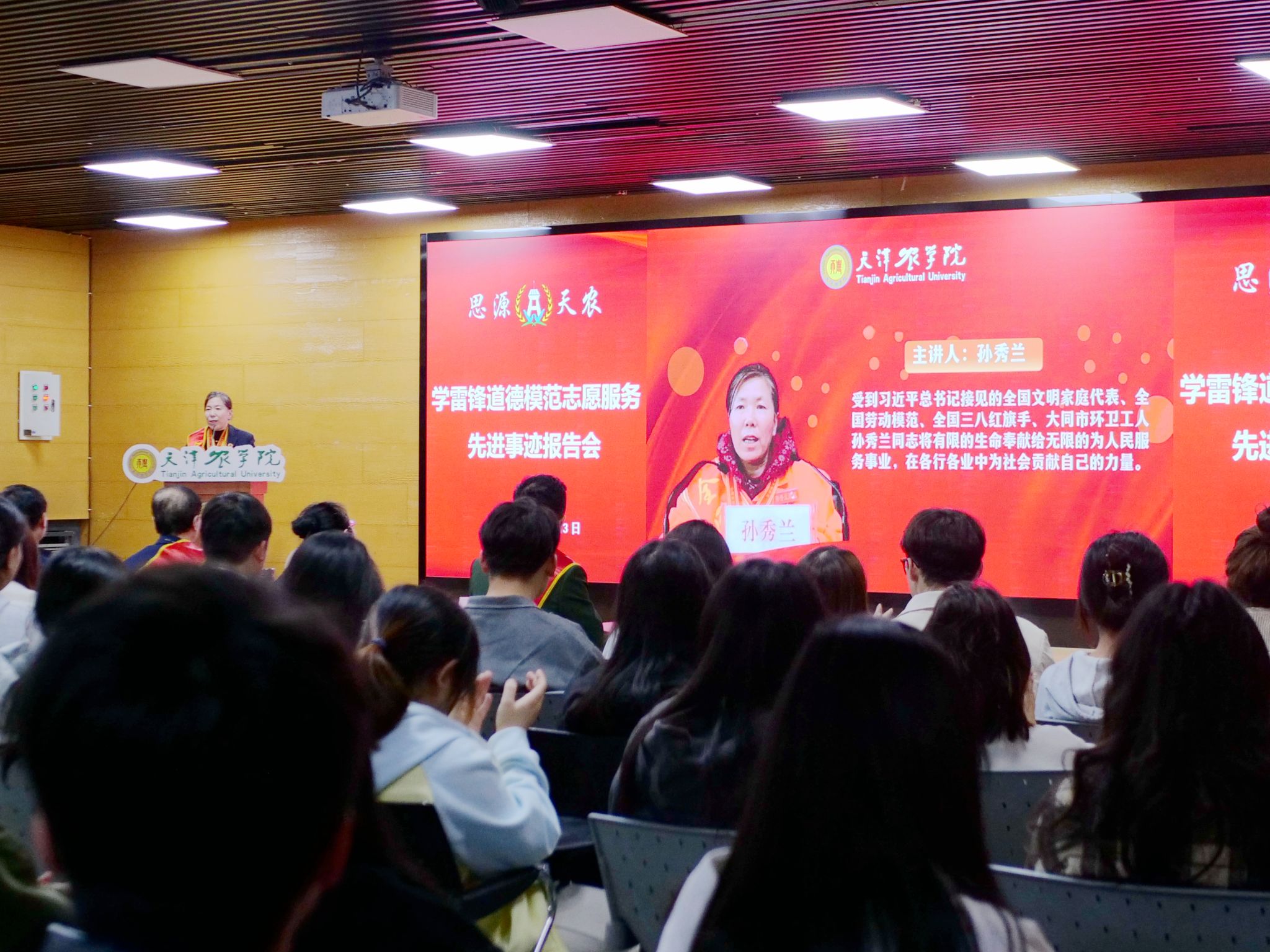 为落实《天津农学院关于推进志愿服务制度化的实施意见》《天津农学院志愿者服务管理办法》等文件要求,大力弘扬新时代雷锋精神、培育社会主义核心价值观,激励我校团员青年厚植爱党爱国爱农爱校情怀,3月13日下午,我校举办“学雷锋道德模范志愿服务先进事迹报告会”,报告会邀请山西省学雷锋道德模范志愿服务先进事迹巡讲团进行宣讲。校党委副书记宋涛参加报告会。