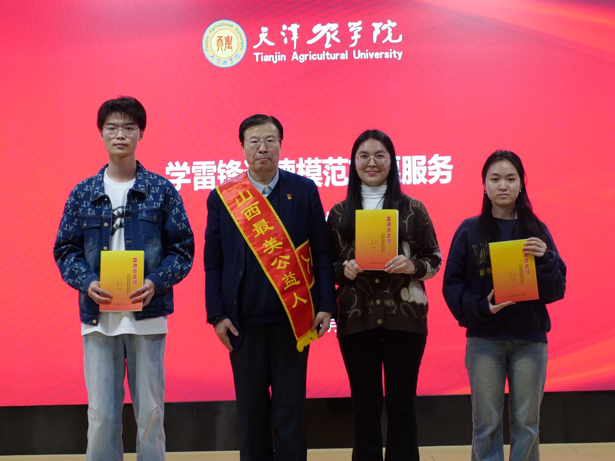 宣讲团为我校青年志愿者代表赠送书籍《奋进者之歌——山西省首届最美公益人刘建成和他带领的学雷锋巡讲团的故事》。