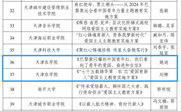 为庆祝中华人民共和国成立75周年,着力推动优质红色教育资源共享与宣传推广,在天津市举办的“庆祝中华人民共和国成立75周年天津市大中小学第二届爱国主义教育系列活动暨红色教育主题示范活动”中,我校辅导员姚笛老师、刘柳老师荣获大学生爱国主义主题教育方案三等奖。